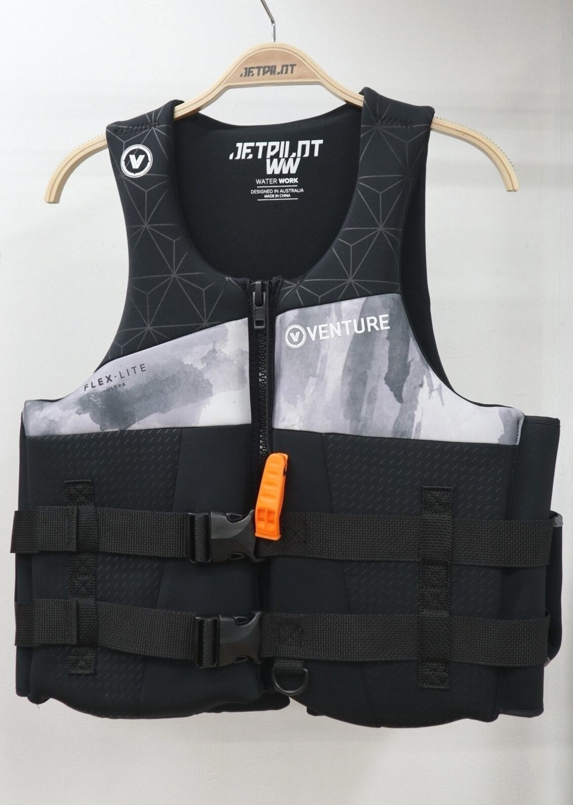 フロントジップ、2バックルホールドモデル。