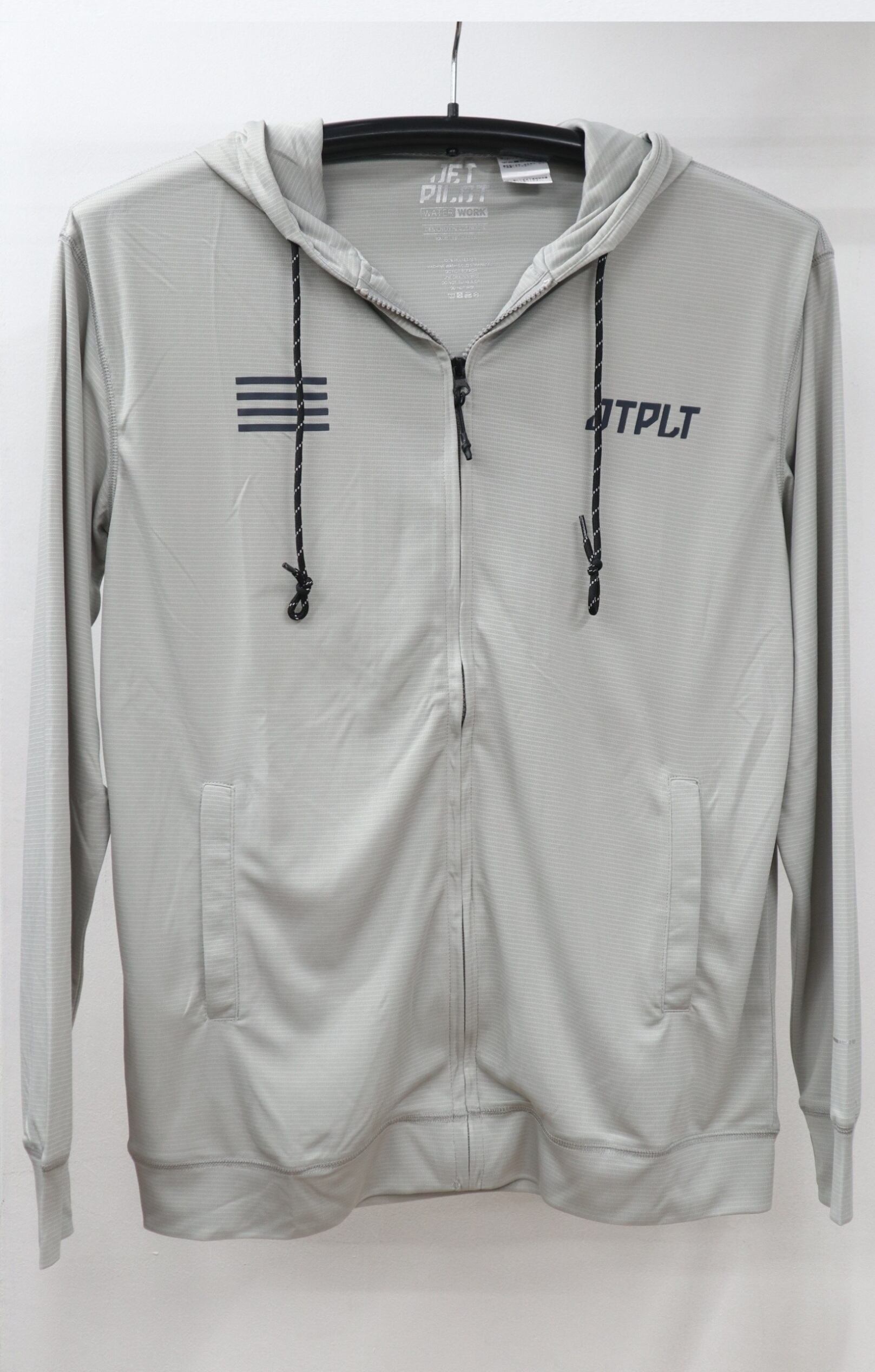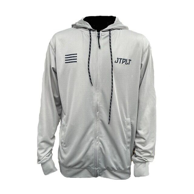 ルーズフィットデザインのフロントジッパータイプラッシュフーディー。